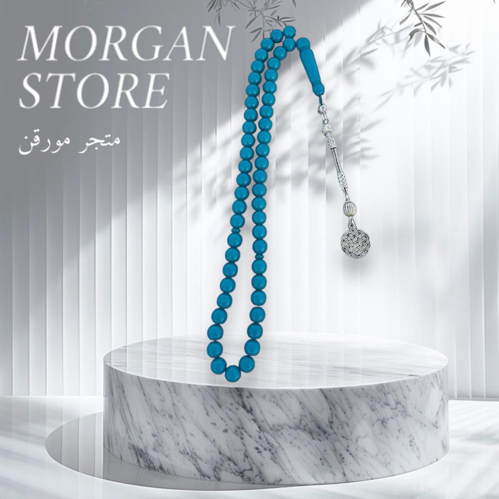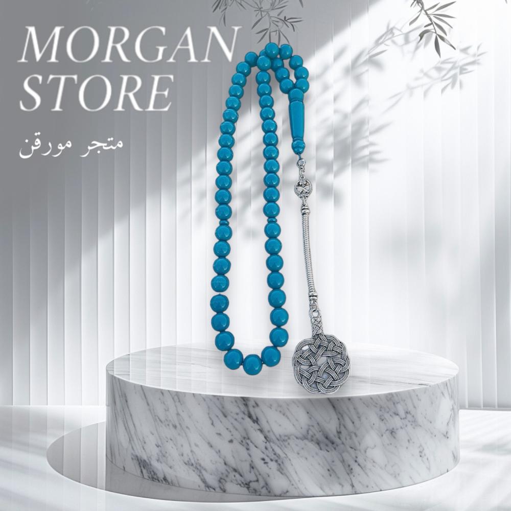 الخامة مايسمى بالبكلايت خفيفة الوزن مصممة للاستخدام اليومي، تتميز بتصميم مريح وأنيق، عليها طربزونه بشكل جميل مصنوعة يدوياً مما يعطي السبحة جمال وفخامة. طريقة تقديم مميزة جدا مناسبة للإهداء