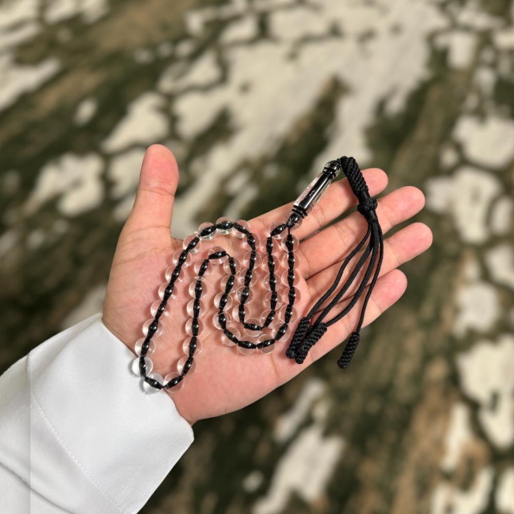 الخامة مايسمى بالبكلايت خفيفة الوزن مصممة للاستخدام اليومي، تتميز بتصميم مريح وأنيق، عليها طربزونه بشكل جميل مصنوعة يدوياً مما يعطي السبحة جمال وفخامة. طريقة تقديم مميزة جدا مناسبة للإهداء